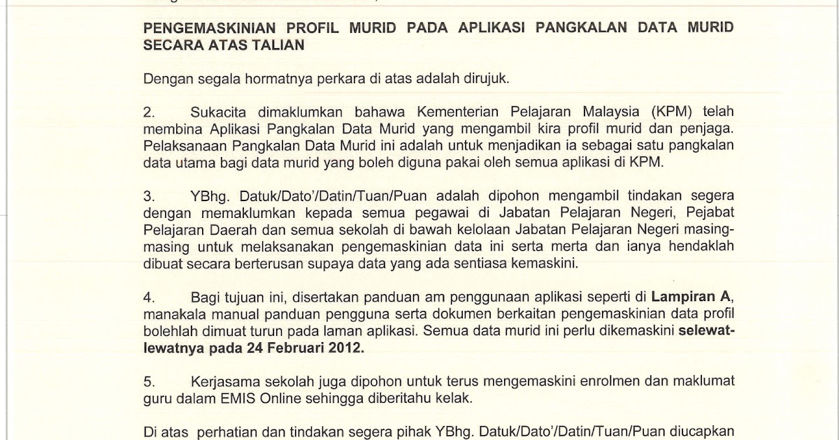 Savesave borang pangkalan data murid kpm kosong for later. Laman ini diwujudkan sebagai saluran maklumat dan tempat perbincangan berkenaan system apdm. Aplikasi pangkalan data murid ini juga menjadi satu kemudahan kepada guru dan pihak pengurusan sekolah bagi mengumpul dan menganalisa data kehadiran murid secara harian, mingguan, bulanan bahkan juga analisa tahunan. Implementation timeline for ensuring principals are minimally ict literate and that there is environment to compel ict usage. Disertakan juga tutorial cara kemaskini dan memadam maklumat murid di dalam database apdm.