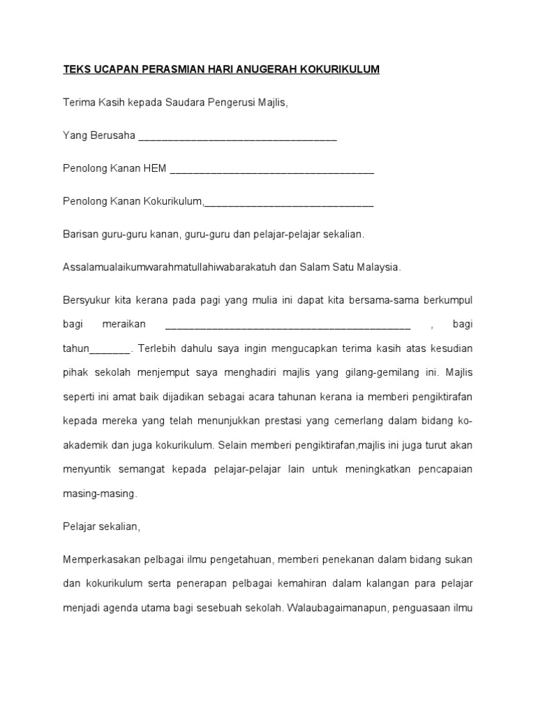 Related : Contoh Teks Ucapan Perasmian / Ucapan perasmian hari anugerah kokurikulum..