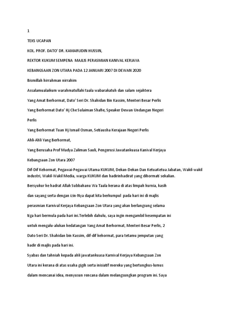 Teks ucapan perasmi,dekan fst 1. Mesyuarat agung pibg smkspp 2017 telah dirasmikan oleh tuan haji muhammad khairi bin a. Sekali lagi ucapan terima kasih kepada yang berhormat dato' sri. Teks ucapan majlis pelancaran program khidmat bantu dirumah daerah yan. Yang berhormat dato' haji tajul urus bin mat zain exco pendidikan negeri kedah sempena program bual bicara suruhanjaya perkhidmatan pelajaran pada :