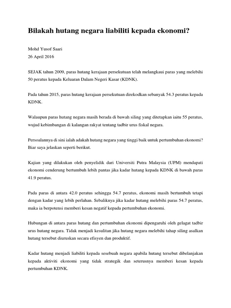 Jujur saja aku kaget, karena. Contoh karangan kegiatan rasuah meninggalkan pelbagai perkara yang negatif kepada masyarakat dan malaysia. Negera mana saja yang berhutang kepada china? Salah satunya ya indonesia yang konon masih punya hutang kepada jerman. Ada perbezaan tau antara hutang negara (national debt), hutang kerajaan (government debt) dan tu sebabnya percubaan untuk mengurangkan hutang/defisit kerajaan secara drastik akan memberi kesan negatif kepada sektor swasta.